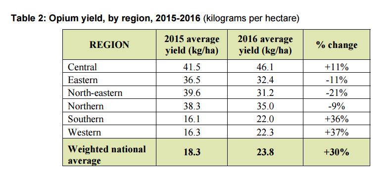 Potential opium yield and production increased in 2016