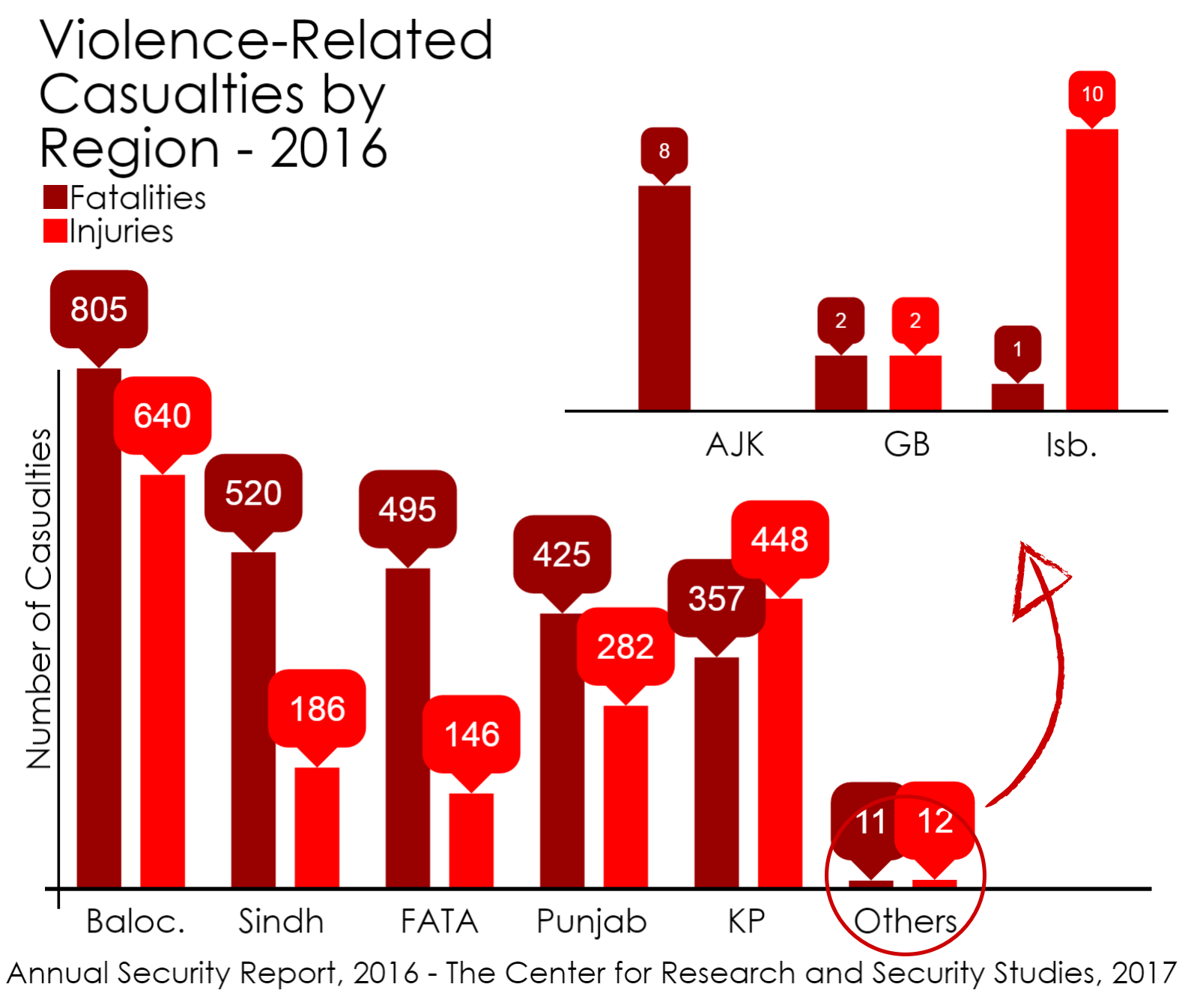 Another major change observed was the escalation of fatalities from violence in those provinces that earlier experienced a decline while an inversely opposite trend was observed in other provinces. Violence in Balochistan spiked, while in the Federally Administered Tribal Areas (FATA) and Sindh, it declined significantly.