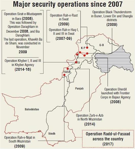 This is overall 11th military operation launched in the country since 2007 when the country adopted a comprehensive strategy to deal with terrorism. But most of earlier campaigns restricted to the tribal regions, Balochistan and Karachi.