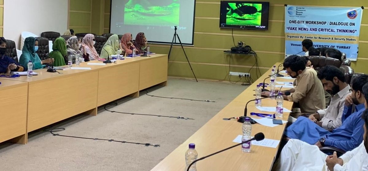 The Center for Research and Security Studies (CRSS) organized a two-day workshop in the University of Turbat and Gwadar campus on October 11 and 12, 2021 respectively. Thirty students, senior faculty members of the university, and representatives from local media were among the participants. The main purpose of this workshop was to enhance the ability of the students to understand the importance of media ethics, critical thinking, and fake news.