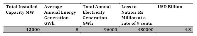 The energy crisis in Pakistan is not attributable to the installed capacity as recent calculations (June 2013) show that the country has an installed capacity of 23,663 MW8 but that it cannot generate greater than 16,000MW due to lack of fuel availability and inability to meet the peak summer demand of 21,000MW, thus creating a shortfall of 5000MW9 in peak summer season. This persistent energy shortfall has led to an annual reduction of 2-3% of GDP with export losses of over US$ 1 billion.