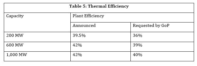 II. Net Thermal Efficiency: The GoP has requested following net thermal efficiencies (LHV):