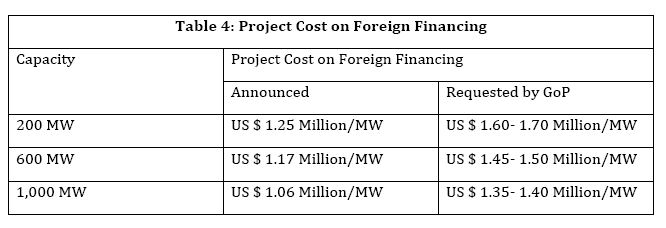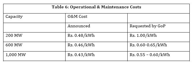 In pursuit of this review request, NEPRA announced project costs, efficiency, and O&M costs and held a hearing on April 9th, 201418 (copy attached in annex) to revise the numbers. The capital cost and O&M costs for the project were higher than those previously announced, while efficiency was lower, as seen in the tables below 19: