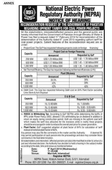 However, in June 2013, NEPRA revised the upfront tariff for coal-based power plants and unveiled the new revised tariff for imported and local coal.13