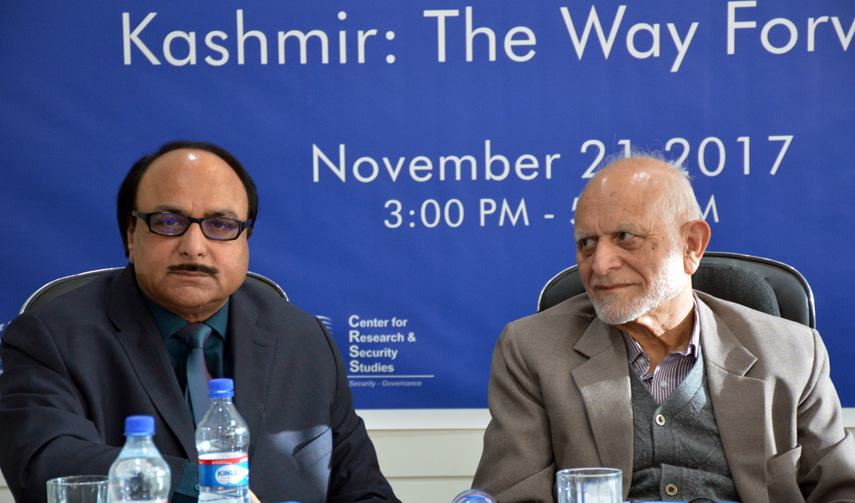 Dr. Nazir Gilani, President of London-based Jammu and Kashmir Council for Human Rights (JKCHR) who specializes in the jurisprudence of UN resolutions and Kashmir case, and Justice (R) Syed Hussain Manzoor Gilani, Chairman Association for the Rights of People of J&K, member Council of Islamic Ideology of Pakistan (CII) were the chief speakers at the event.