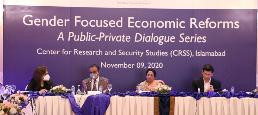 The remarks were made by Ms. Roubina Toufiq Shah, former Director General, Ministry of Commerce (MoC) while presenting her keynote during a public-private dialogue on Gender Focused Economic Reforms (GFER), organized by Center for Research and Security Studies (CRSS), Islamabad.