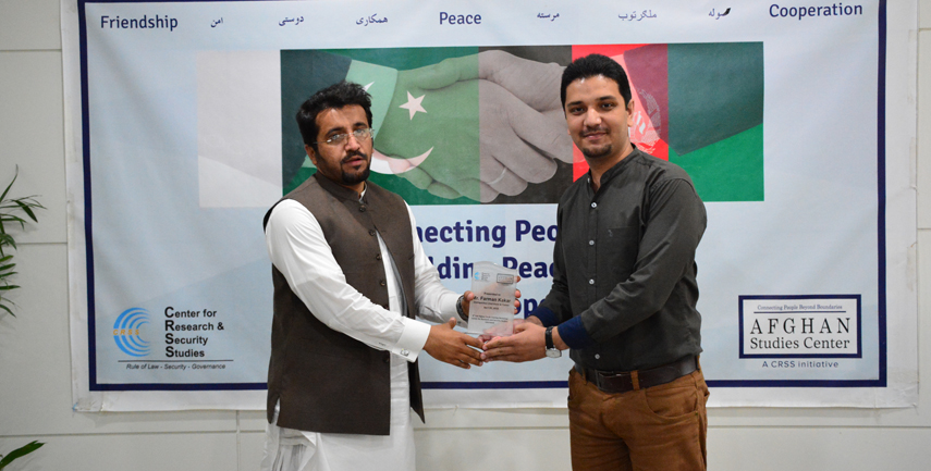 Saddam Hussein, Program Officer at Afghan Studies Center, who was moderating the session, apprised the participants about the ongoing CRSS Pak-Afghan Track 1.5/II Initiative ‘Beyond Boundaries’ which is aimed at improving bilateral relations and bridging the gulf of mistrust between Pakistan and Afghanistan. He further told the participants that the idea of Afghan Studies Center emerged as an off-shoot of the above mentioned initiative, exclusively to provide the youth of both countries to interact, exchange ideas and engage in joint research ventures. CRSS Executive Director Imtiaz Gul, who delivered the opening remarks, highlighted the significance of such youth forums to inculcate critical thinking. He stated that these forums also serve as a bridge between the people of Pakistan and Afghanistan in mitigating the growing resentment in recent years. This was the 9th workshop of Afghan Studies Center that aims at bringing the youth of Afghanistan and Pakistan together on the same platform and build their knowledge and capacity on various subjects of significance for both countries.