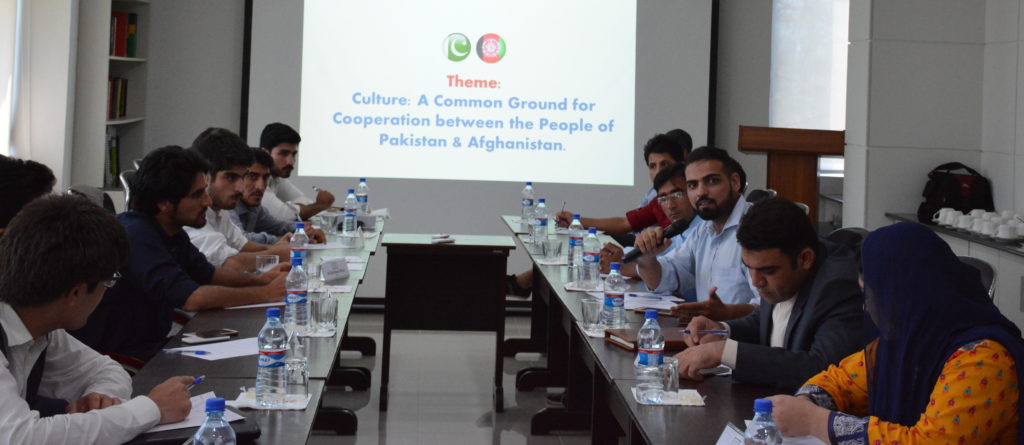 The Center for Research and Security Studies (CRSS) conducted its third Pak-Afghan Youth Dialogue under its Afghan Studies Center initiative on Monday, August 21, 2017, in Islamabad, as part of its ongoing series of monthly dialogues aimed at enhancing people to people contact between Pakistan and Afghanistan. The theme of the dialogue highlighted culture as a common ground for cooperation between the people of both countries which was attended by 17 participants – seven Afghans and ten Pakistanis, most of whom were students enrolled in higher education programs or young working professionals. Some of the participants had travelled from Bannu, Peshawar, Mardan and other distant areas to participate in the dialogue. Qazi Humayun, former Ambassador to Turkey and Afghanistan, was invited as the chief guest while Mr. Aized Ali, CRSS Project Director Beyond Boundaries, moderated the discussion.