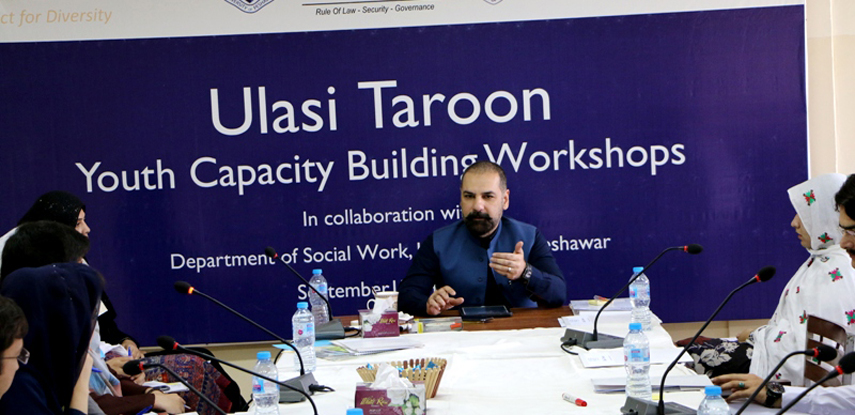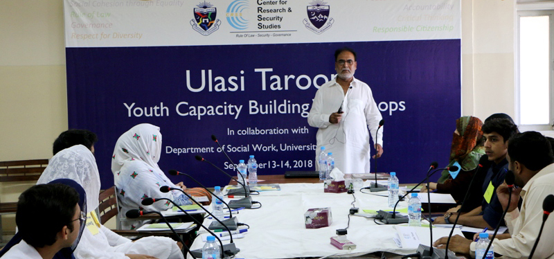 These notions were expressed by Mr. Mirvais Niaz, Senior Police Service of Pakistan (PSP) Officer, posted in Khyber Pakhtunkhwa during the ninth round of Ulasi Taroon, Youth Capacity Building Workshops organized by the Center for Research and Security Studies (CRSS) at the Department of Social Work, University of Peshawar from September 13-14, 2018. Barrister Ali Gohar; members of the faculty of social work department; and team CRSS also spoke during the workshop.