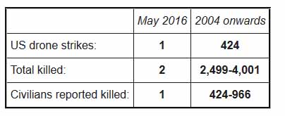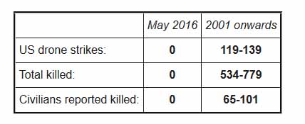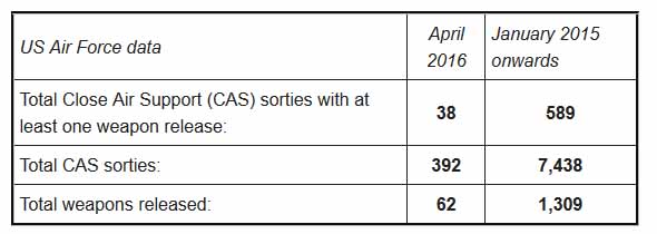 The Bureau is collecting data on individual strikes in Afghanistan, summarised above. However not all strikes are reported in open source material. The US Air Force publishes an aggregate summary of strikes in Afghanistan without any casualty information, which we have reproduced below. The figures for May will be released in June.