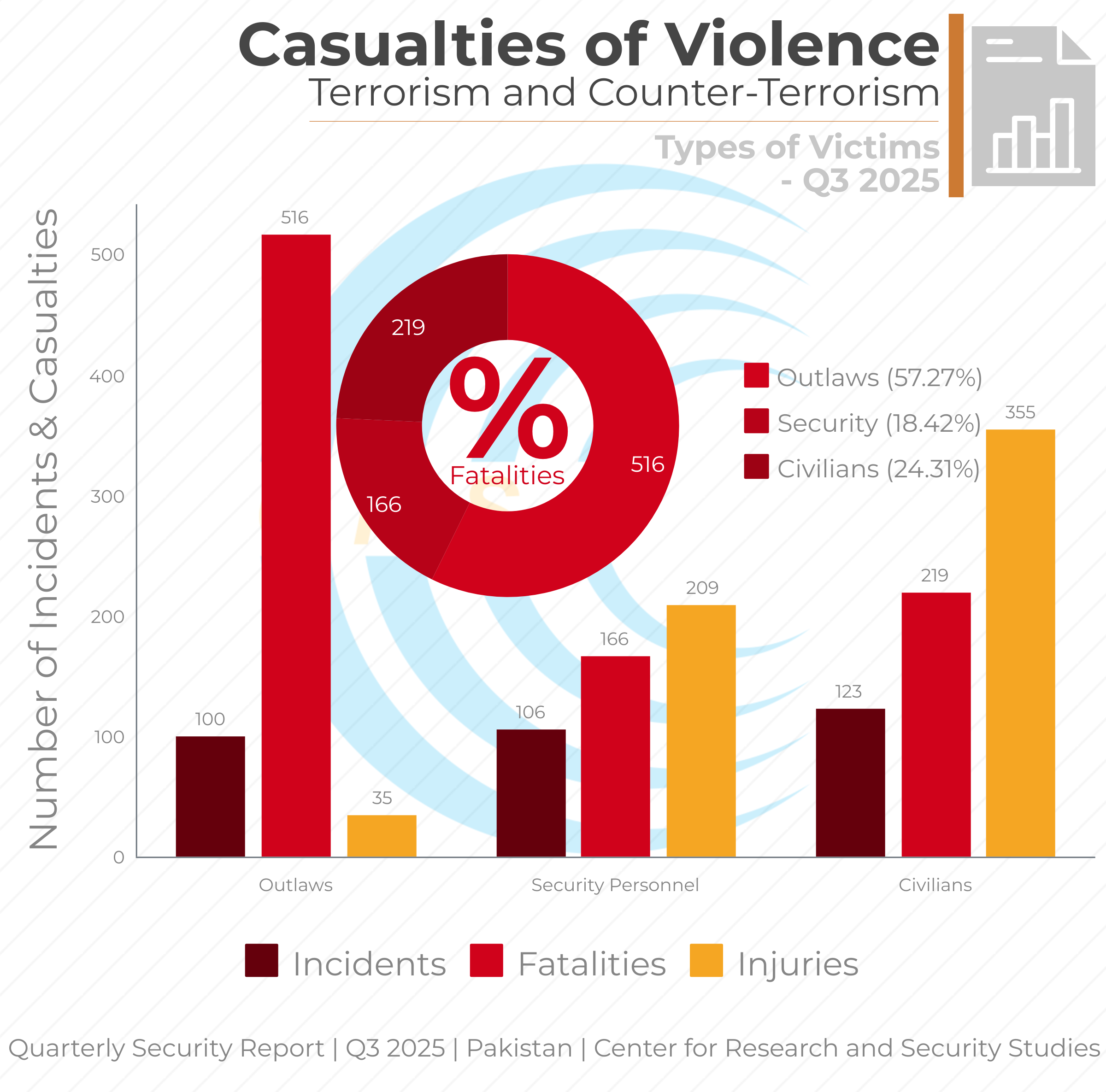 Compared to Q2, 2025, these figures mark almost 55% more losses among outlaws (516 vs 333), over 43% among civilians (219 vs 153), and nearly 28% among security personnel (166 vs 130).